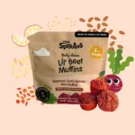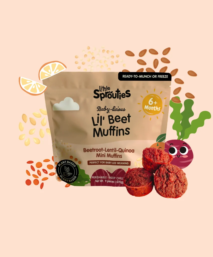 9 soft mini muffins with fresh beetroot, lentils, quinoa & spelt flour and a hint of orange. A perfect BLW food rich in iron & protein!